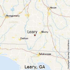 There are many towns within the total area, so if you're looking for closer places, try a smaller radius. Jimmy carter, united states president from 1977 until 1981, reported seeing an unidentified flying object while at leary, georgia, in 1969.while serving as governor of georgia, carter was asked to file a report of the sighting by the international ufo bureau in oklahoma city, which he did on september 14, 1973. Seattle mariners third baseman chone figgins was born in leary. 24 near the procter and gamble plant off u.s.